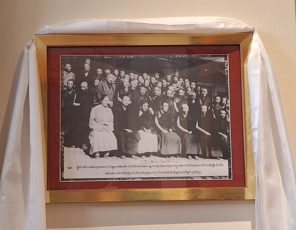 Das neue Jahr startet mit einem neuen Kurs und einer neuen Idee, diesmal verschiedene hauptsächlich tibetische Meister und Lehrer des 20. / 21. Jahrhunderts vorzustellen. Das Foto, eine Reproduktion einer Aufnahme von 1963, zeigt die damaligen tibetischen Lehrer und Gelehrten, in der Mitte ist S.H. Dalai Lama zu erkennen, daneben in weissem Beinkleid der 41. Sakya Trizin, neben ihm der 16. Karmapa. Jeder Abend ist einem Meister gewidmet, und ich werde in der kurzen Zeit versuchen, sein Leben und eines der wichtigsten Themen, herauszusuchen, wofür dieser Meister sich besonders interessiert(e) oder spezialisiert ist/war.